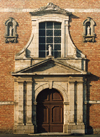 La porte de Beaulieu, entièrement en briques, est flanquée de deux tours circulaires.